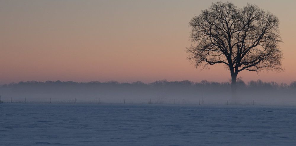 A stone-cold morning in the Achterhoek where the old oak tree greets the new day
