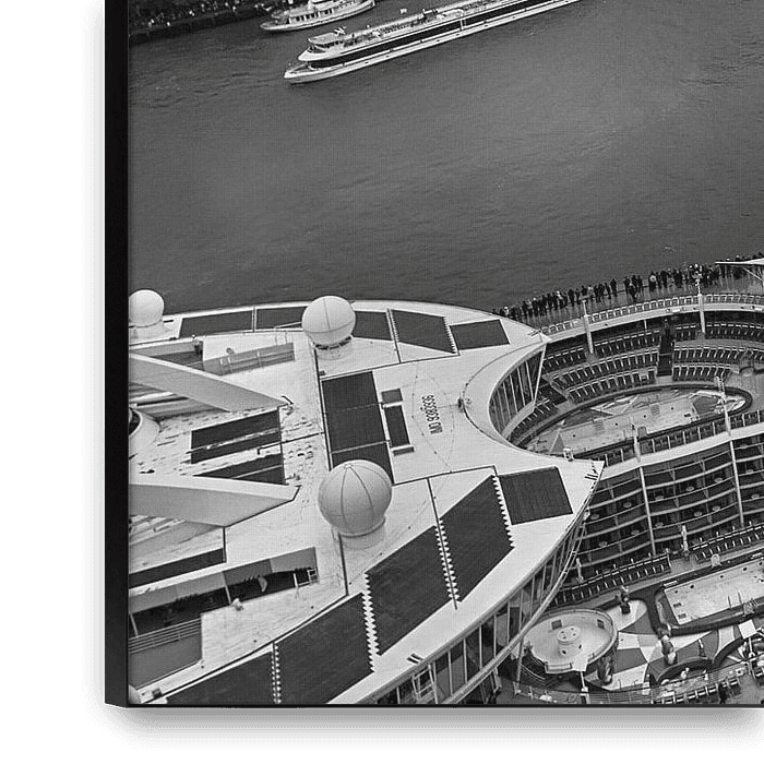 The former world largest cruise ship "Oasis of the Seas" at Rotterdam's Erasmus Bridge. The ship was two weeks in the Netherlands for service and left to go to his workarea the Caribbean.