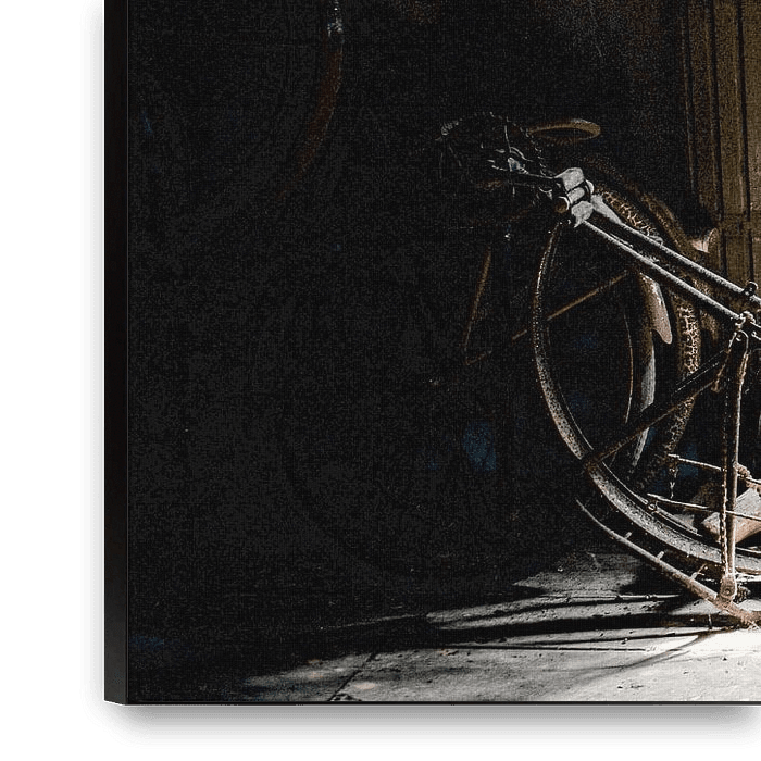 In the old attic there is a beautiful light through the old window. In front of the window you see an old fence and an antique bicycle.