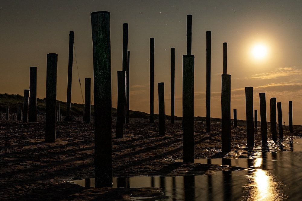 The Palendorp at Petten captured in the middle of the night with a full moon.
