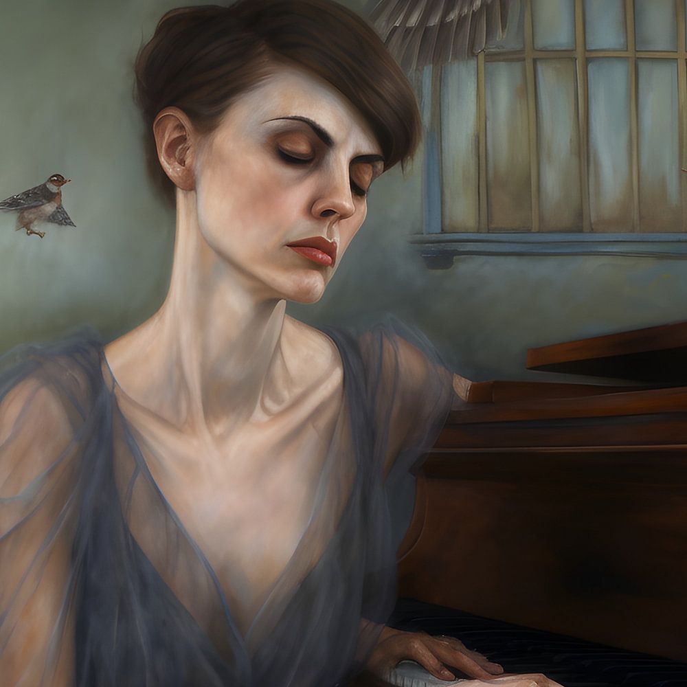 Buy this painting The Piano Player by Heike Hultsch as a reproduction on canvas, ArtFrame, poster and wallpaper, printed on demand in high quality.