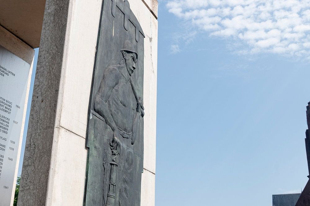 Mechelen aan de Maas Limburg Belgium Eisden-Tuinwijk garden district. Memorial to the miners who died during the operation of the mine. The Putmen. The garden district was built for the workers of the Eisden Coal Mine, which went into production in 1923. The district was influenced by similar social projects such as Port Sunlight in the UK. coal mine, worker, worker, workers, Maasmechelen, kompel, memorial, fatalities,