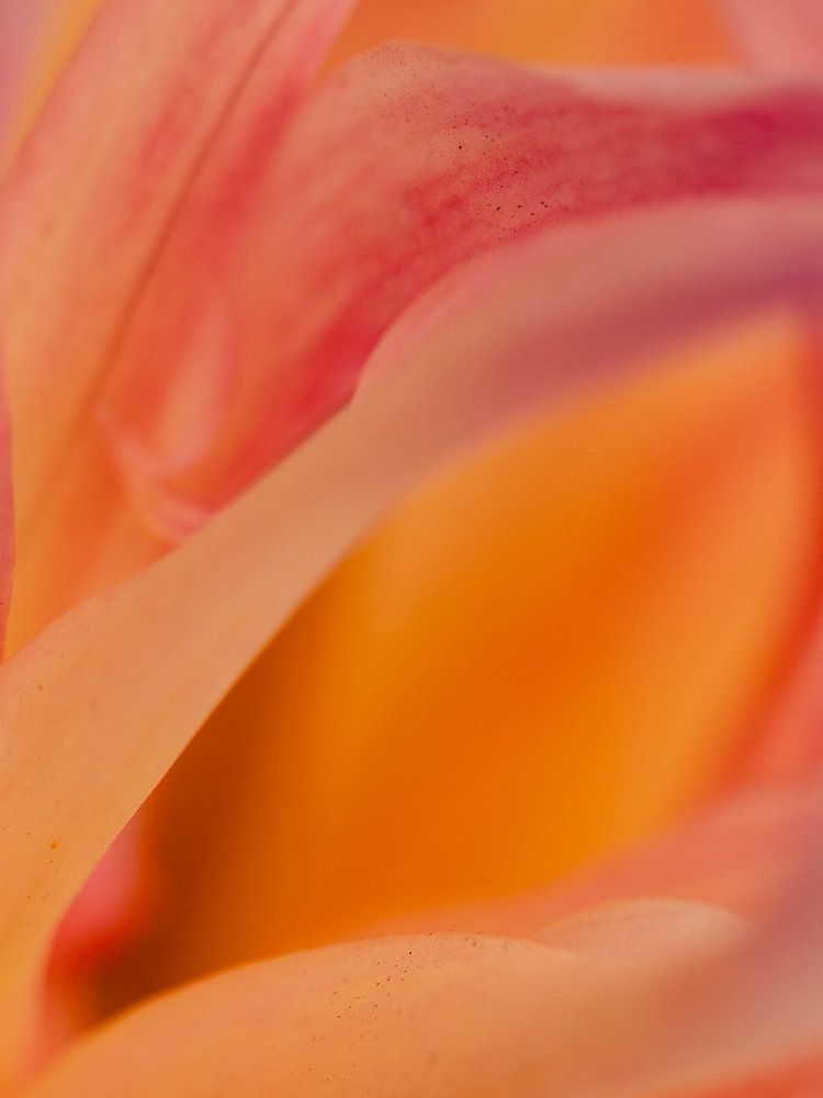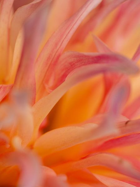 A beautiful macro photograph of a dahlia, like soft, sweet flames kissing the sunrise. It makes you long for fine weather, longer days, spring and summer! A sweet image you can lose yourself in.