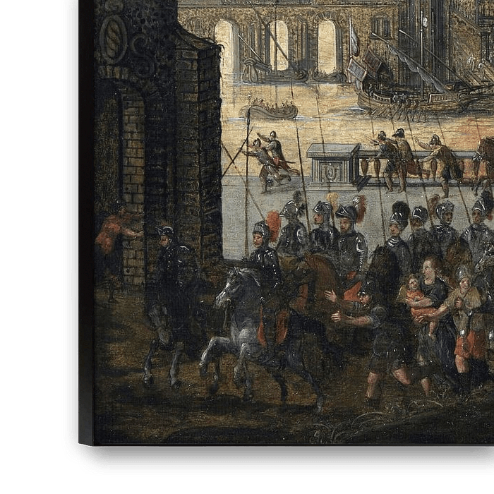 Buy The Raid of Troy, Louis de Caullery as a reproduction on canvas, ArtFrame, poster and wallpaper, printed on demand in high quality.