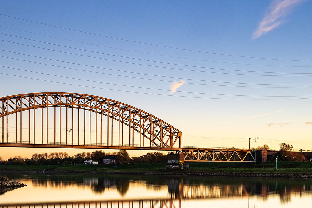 Sunrise with a view of the railway bridge over the Rhine near Oosterbeek.
