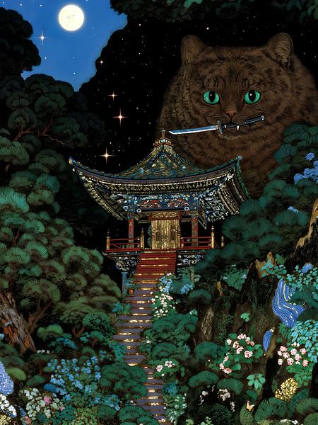 Buy this landscape artwork The Samurai Cats by James on canvas, ArtFrame, poster and wallpaper, printed on demand in high quality.