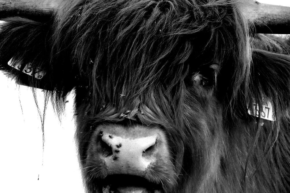 Scottish Highlander in black and white photography