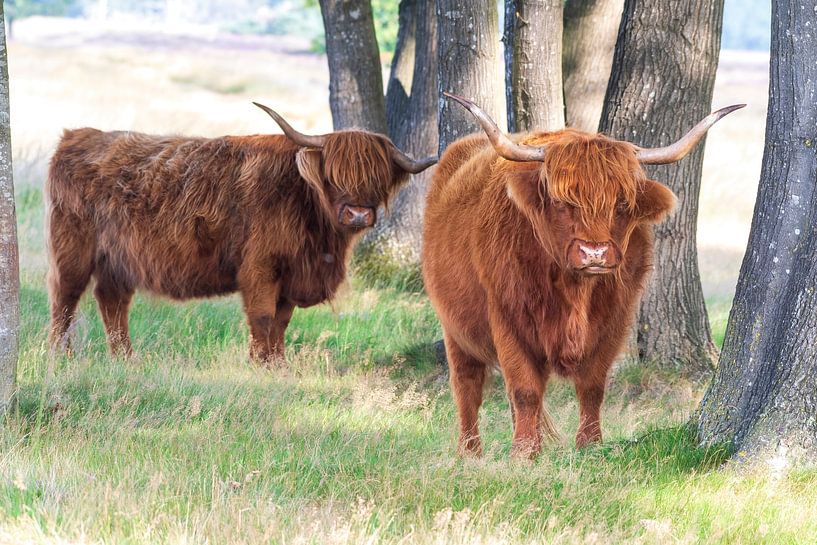 Buy this landscape artwork The Scottish Highland cattle by Merijn Loch on canvas, ArtFrame, poster and wallpaper, printed on demand in high quality.