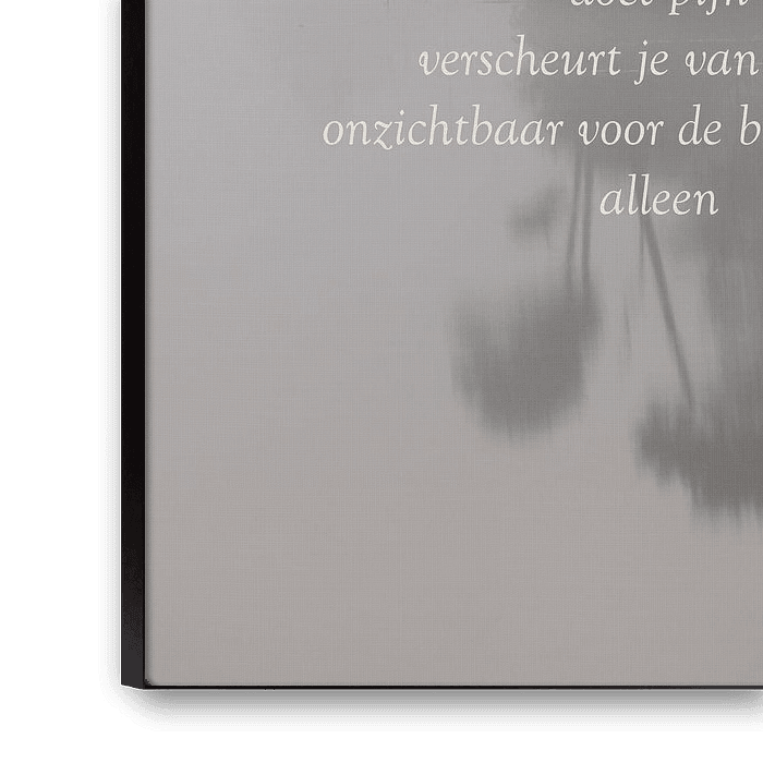 I wrote the text in this picture myself. It is the voice of what often remains silent: a penetrating message about a pain that tears you up inside, but often remains hidden on the outside. It offers the viewer a moment of recognition and reflection.