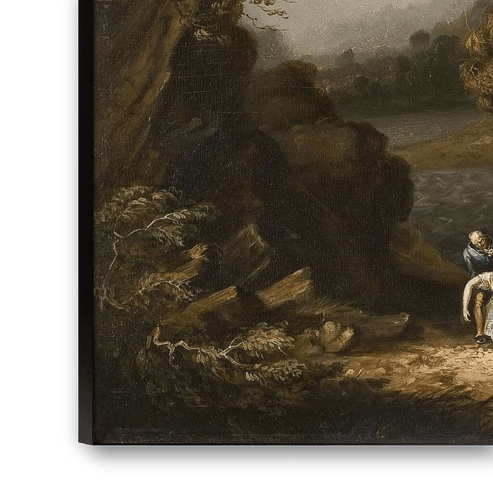 The storm that rages in this early painting by Thomas Cole is a natural counterpoint to the overwrought emotions of the swooning, perhaps dying, woman in white. Here, Cole likely illustrates a frontier drama he authored in 1825. His emphasis on the “sublime and beautiful”—dimensions of nature thought to parallel human emotions—was a popular convention. Cole claims this scene as uniquely American: a modest homestead, likely of pioneers, stands humble and isolated in a wild landscape.The Tempest, Thomas Cole (1826)