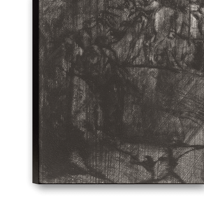 Christ hangs on the cross between two murderers, surrounded by apostles, his mother, disciples and soldiers. Rembrandt executed the scene entirely in the drypoint technique, which had (almost) never been done before. This involves using an etching needle to scratch directly into the copper, giving the lines a frayed, velvety character. The giant print is also printed with light plate tone.