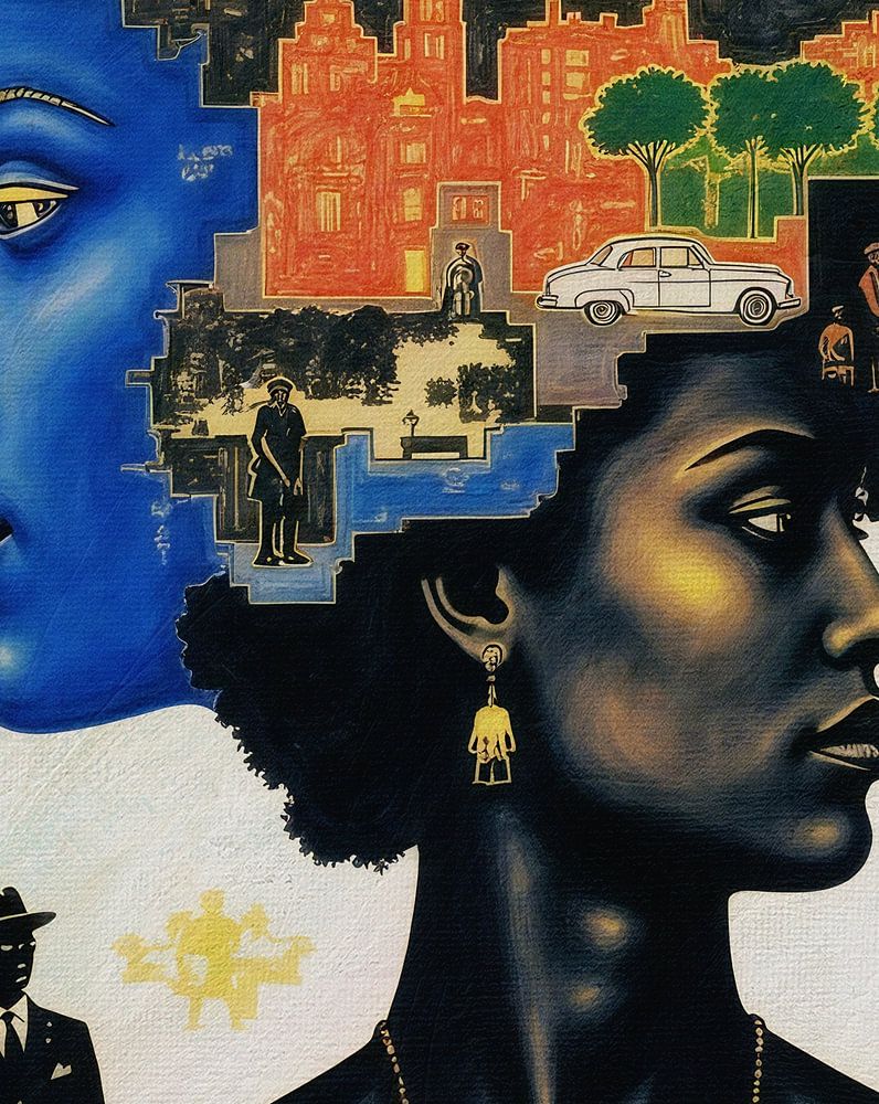 This collage looks at the idea of duality, which is the relationship between what is on the inside and what is on the outside and shapes us. The two heads of the woman represent the complex nature of identity, with each head facing in a different direction to show the tension and harmony within us. The overlapping section shows a busy city and a green natural landscape, which shows the difference between the fast-paced city and the quiet, relaxing presence of nature. Together, these elements create a sense of balance, which represents the connection between our own desires, emotions, and the world around us.