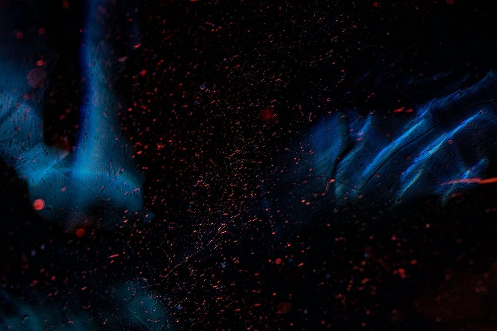 A detail of an ice image in which I see a Universe with blue and red emerging.