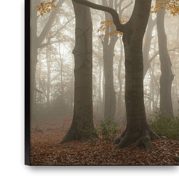 Buy the photo The Veluwe, the forest in the mist in orange autumn by Esther Wagensveld on canvas, ArtFrame, poster and wallpaper, printed on demand in high quality.