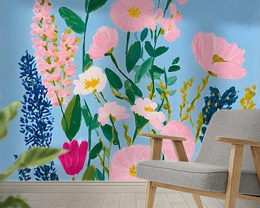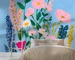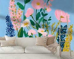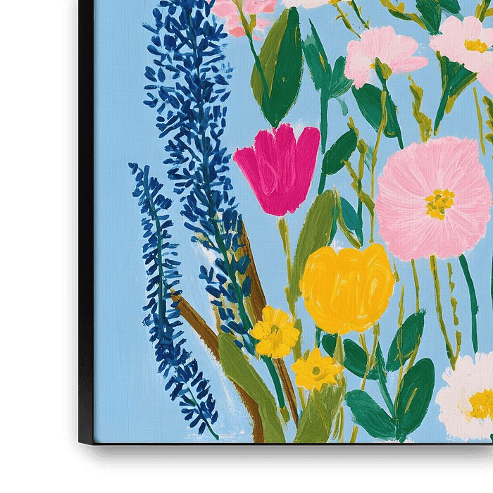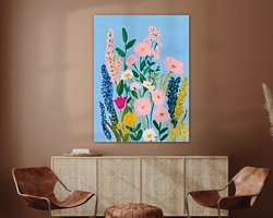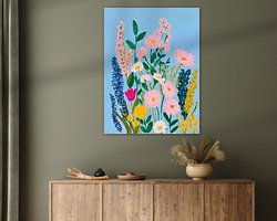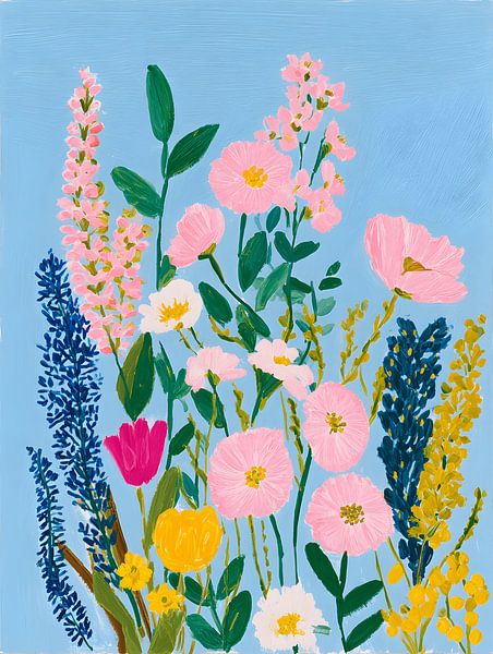 In this artwork, wildflowers are brought to life in a mix of vibrant colours and hues, blending beautifully and evoking the cheerful atmosphere.