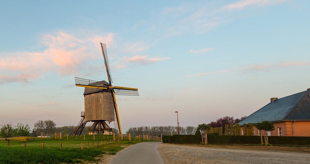 In the early morning with the sun rising, this beautiful Windekemolen in Oosterzele is showing off.