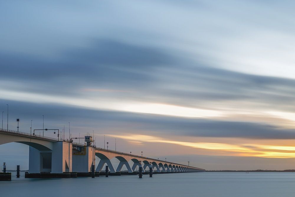 Buy this landscape artwork The Zeeland Bridge by Maikel Brands on canvas, ArtFrame, poster and wallpaper, printed on demand in high quality.