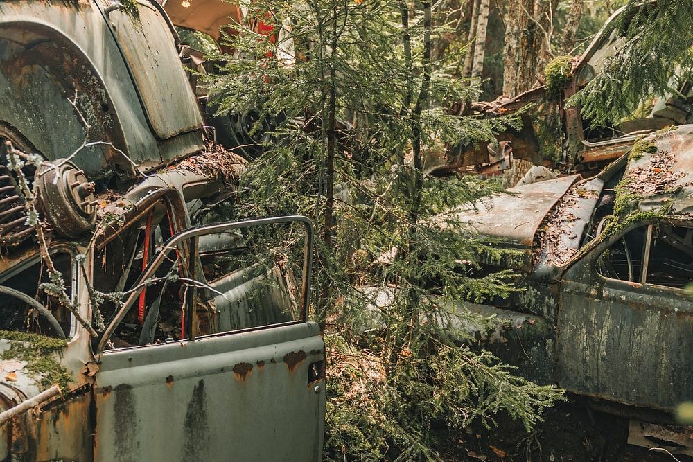The car graveyard in Sweden. On the border of Norway with Sweden is this car graveyard. It started with two brothers in the 1950s collecting old, abandoned cars. After 40 years, they accepted that, because of the dense forest, trees and foliage overtaking the cars, the car cemetery would become a graveyard. One of the brothers still lives in the area and tried to sell parts or the cars for their vintage value. Most of the cars are now one with nature and are not going anywhere. You can visit the place freely and take a step into a literal (horror) movie. It's a great place to look around and take photos!