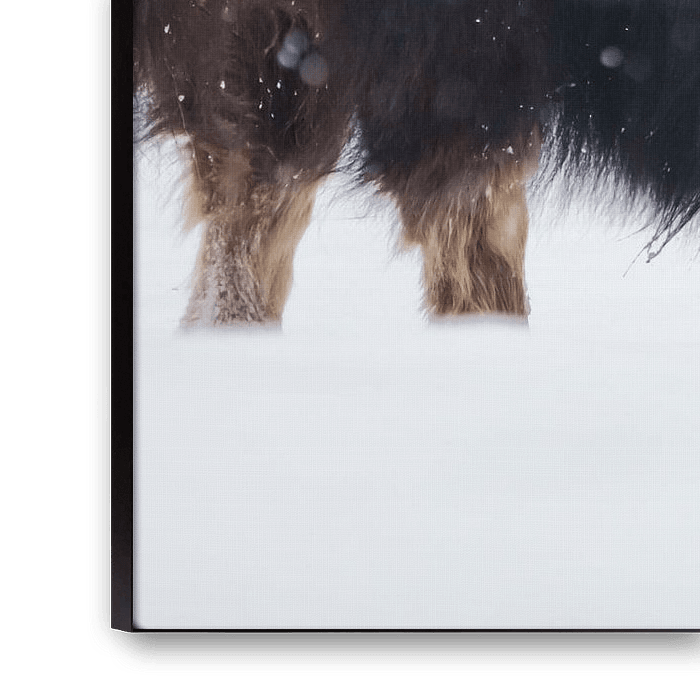 The battle of the bulls, the fight (butting) close-up. Ice horned polar relic beast of the ice age hairy musk ox beast on winter snow.