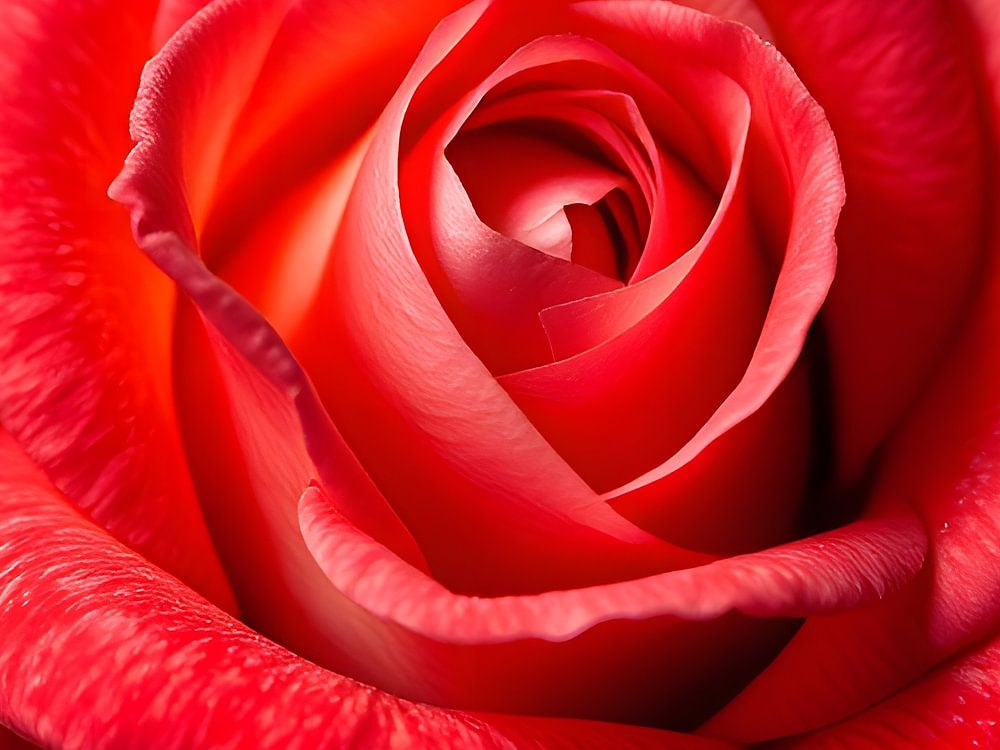 The picture shows a beautiful red rose in full bloom. Its velvety petals shine in a vibrant red and have subtle colour gradients that emphasise their natural elegance. The dark background highlights the bright colour, making the rose appear almost sublime. Its perfect symmetry lends it a special grace and makes it a timeless symbol of love and passion.