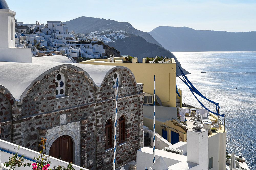Buy the photo The blue domes of Santorini by Robert Styppa on canvas, ArtFrame, poster and wallpaper, printed on demand in high quality.
