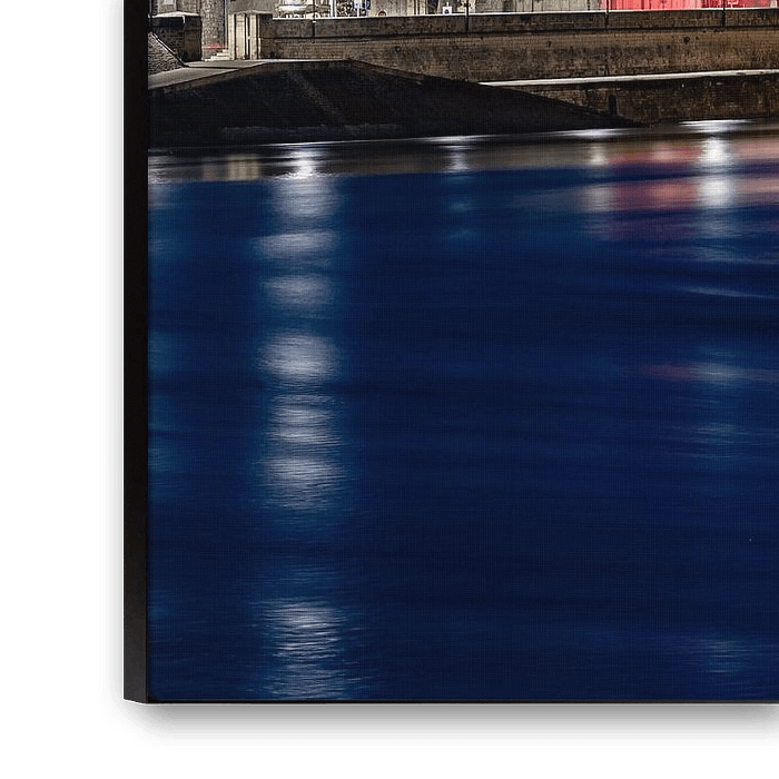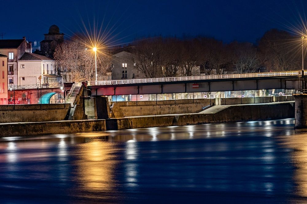 It doesn't get bluer than this on this cold winter evening on the River Rhone, Arles, France. The unusual colours and the complete softening of sky and water is due to the 'long shutter speed' technique. The camera was on for 30 seconds here. Some people wonder how the star formation comes from the large lanterns on the bridge. That is a side effect of the aperture in the camera. By making the opening through which the light has to go very small, the light 'escapes' in long streaks along the overlaps of the aperture blades. A clever feat of optics, then.