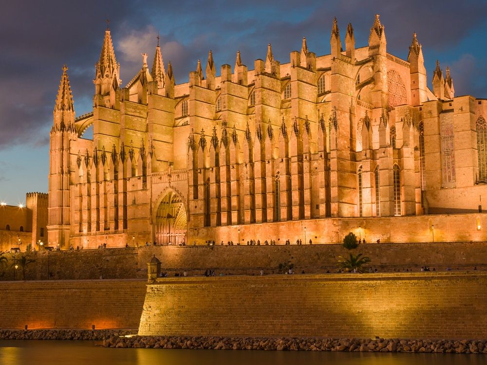 The imposing La Seu Cathedral is a monumental building by the sea that was built over a period of several centuries. Construction began around 1230 on the orders of Mallorcan King Jaume I, after centuries of Arab domination on the Mediterranean island had come to an end. The mighty church stands on the foundations of a mosque. More than 350 years passed before the final completion of the nave and the main portal. The work was completed in 1601.