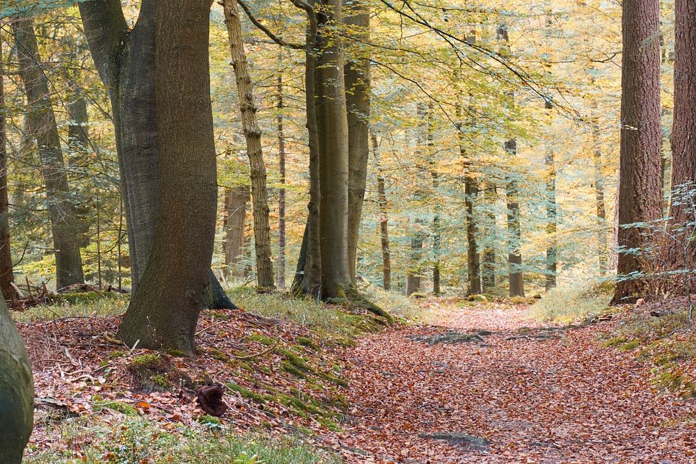 While walking through the autumn forest, I came across this crooked tree. Together with the path and autumn colours in the background, it gives a nice varied forest landscape.