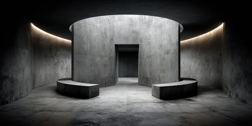This picture shows a space that is self-sufficient. The architecture is completely self-contained and yet opens up in the centre. The circular wall does not create protection, but concentration. It collects the space instead of distributing it. Everything is focussed on the central opening without explaining it.