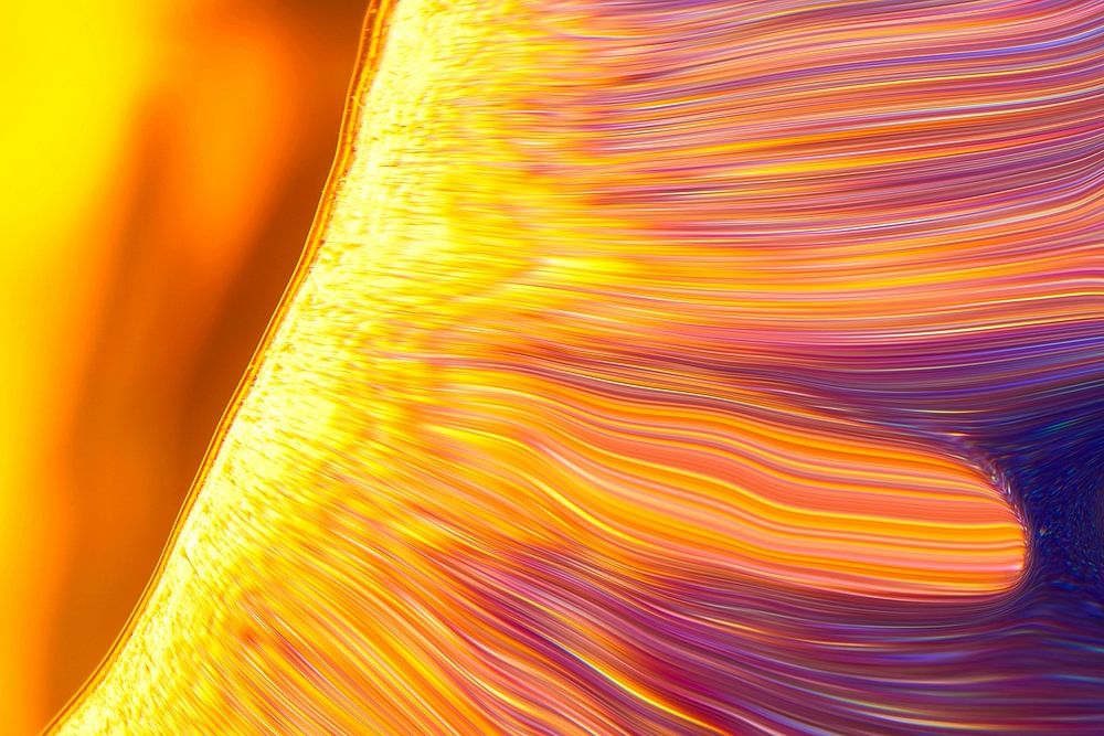 Shaped by the heat, flowing out finding a way and seeking space as loose, compressed threads of colours.