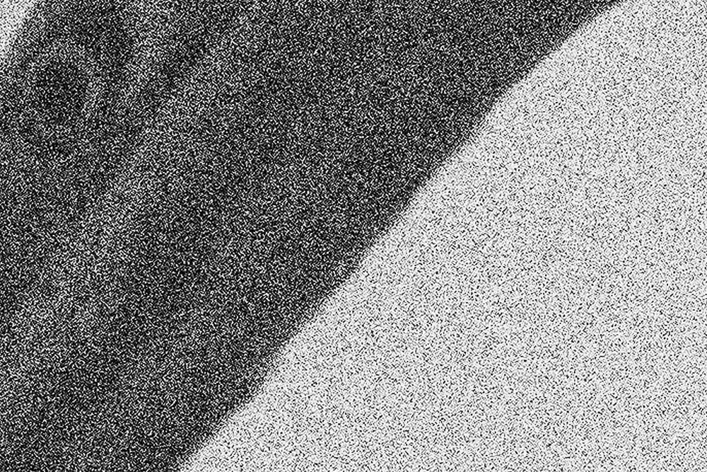 An abstract-looking black and white picture of a great egret, or rather a reflection of it. The reflection on the shady water surface was the starting point for this image. By enlarging, increasing the contrast and other processing, and then upscaling, it was possible to achieve the completely pixelated surface, which is intentional here in order to achieve the abstract impression.