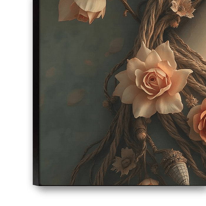 This unique artwork combines the precision of AI with the classic beauty of oil paint, creating a surreal scene that blurs the boundaries of reality and dream. Full of symbolic shapes and unexpected connections, the painting invites the viewer to look deeper and discover the hidden meanings.