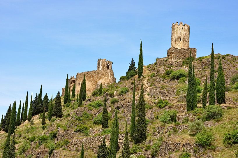 Under a brilliant blue sky, the ruins of the Lastours castles stand as witnesses to the Cathar past. These remains, clinging to the steep cliffs, evoke the grandeur of the lords of the Middle Ages.