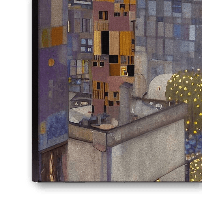 Buy this abstract artwork The kiss of the city by Karin van Bylevelt on canvas, ArtFrame, poster and wallpaper, printed on demand in high quality.