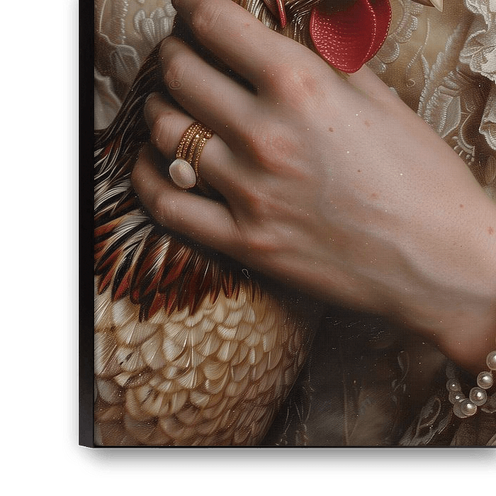 Buy this digital art artwork The lady with chicken by NJ Midnight Studio as a reproduction on canvas, ArtFrame, poster and wallpaper, printed on demand in high quality.