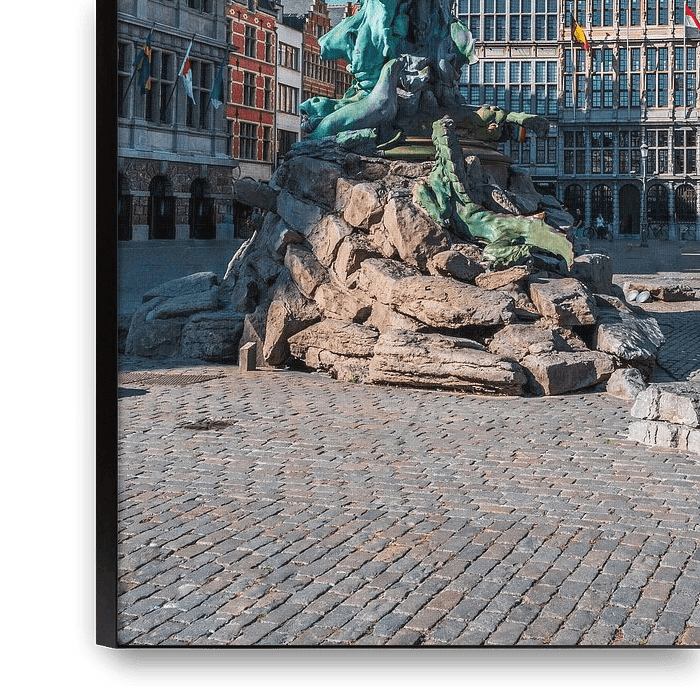 This impressive photo brings the splendour of Antwerp's Grote Markt to life on a bright day with a clear blue sky. The central focal point of the photo is the majestic Brabofountain, with its refined sculpture and historical significance. The monument stands proudly in the centre of the square, inviting admiration for its beauty and…