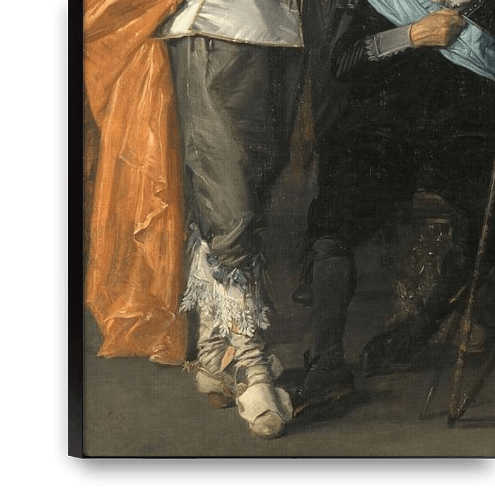A commission for an Amsterdam militia painting was rarely awarded to a painter from outside the city. Frans Hals from Haarlem received it by exception, but was soon at odds with the militia. Amsterdam painter Pieter Codde then had to finish the seven figures on the right. He imitated Hals' style as best he could, even though he usually painted very smooth and delicate on small formats.