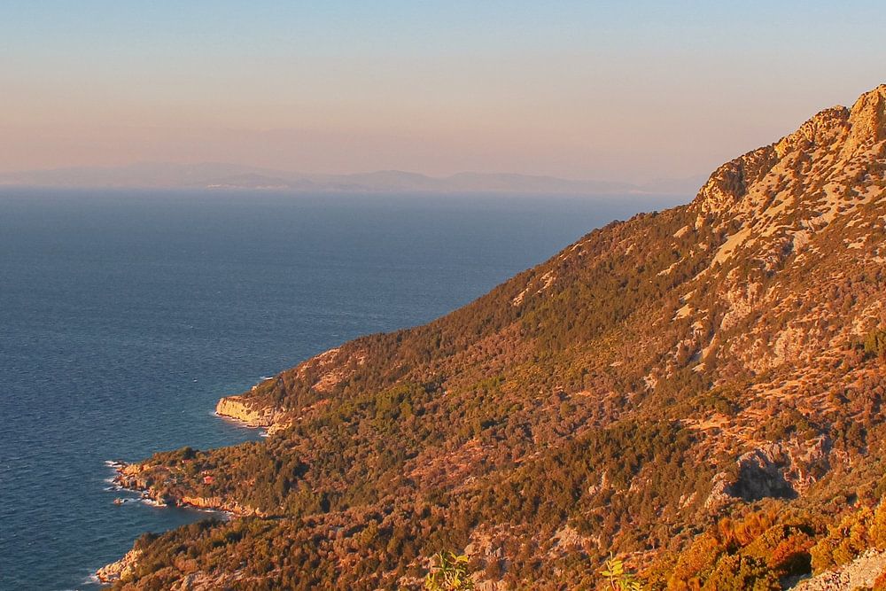 The sunset on Samos is beautiful to see, especially in the mountains of the island's national park.
