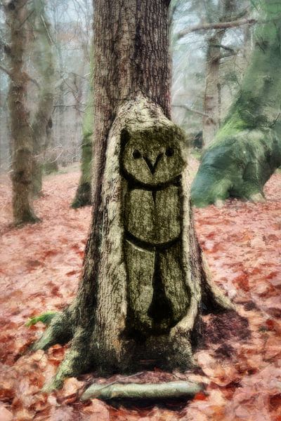 Two images come together in this work. The basis is a photograph I took of a tree in the forest on the Utrechtse Heuvelrug, part of whose trunk is missing. I incorporated a second photograph into that opening: the owl from the Owl Tower. This monument stands at the end of Lomboklaan in Leersum. Combining these two photographs creates a…