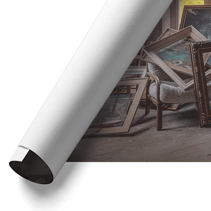 The owner of an old abandoned villa loved to paint. In her studio were many paintings with or without frames. The evening sun shone in very sweetly.