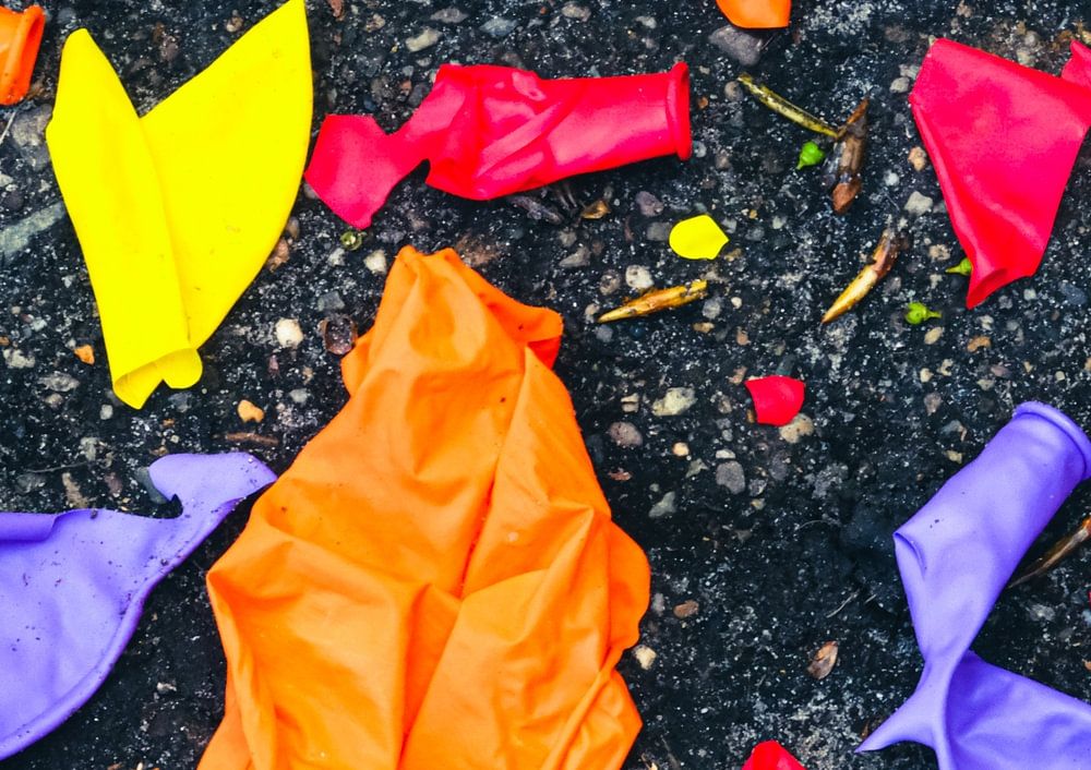 The party is over now. When the party is over the colored broken balloons are left.