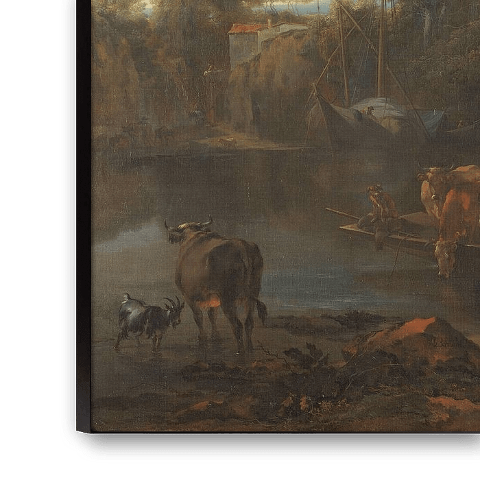 Buy The pontoon, Nicolaes Pietersz. Berchem as a reproduction on canvas, ArtFrame, poster and wallpaper, printed on demand in high quality.