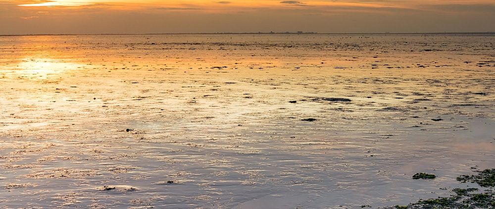 This photo was taken from the Wadden experience point Den Oever. You can beautifully experience all facets of the Wadden here. Ebb and flow are nevertheless special physical forces. Especially at sunrise and as here at sunset you come to complete peace. ENJOY. I wanted to take photos at low tide , so I could also include the breakwaters in the photo. Using the tide table you can figure that out nicely. At 18.00 hours it was low tide and the sun went down at 19.00 hours, so that coincided nicely.