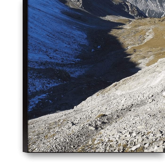 This picture from the Lechtal Alps captures the wild beauty of one of Tyrol's most pristine mountain regions. Majestic peaks tower angularly into the sky, while below them wide mountain meadows, deep valleys and natural paths show the pure soul of the Alps. The light dances over the rock structures, highlighting the typical grey tones…