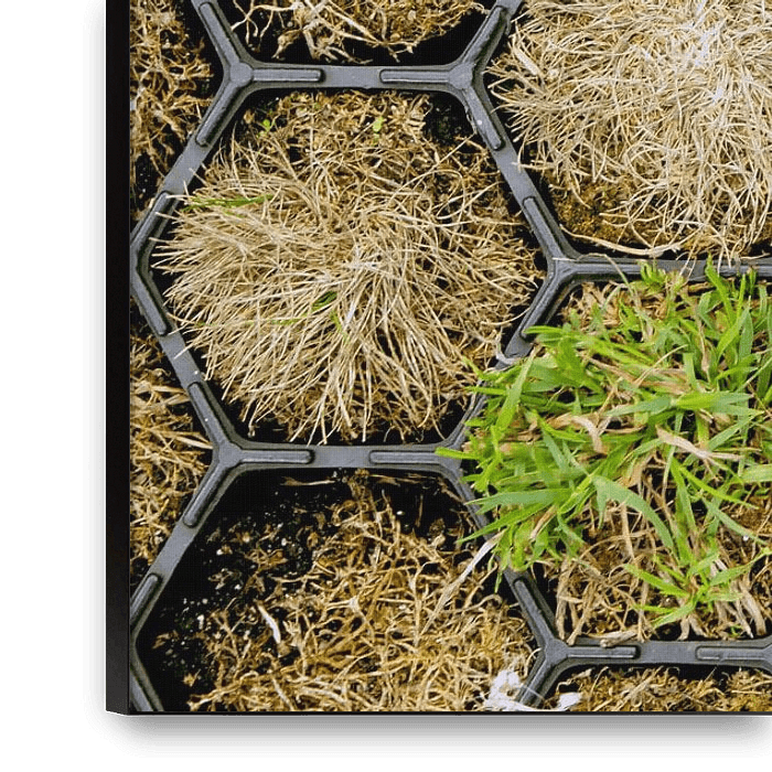 The summer of 2018. Very dry and very warm. But nature is strong. Somewhere in a parking lot in England, I discovered this surface with scorched plants. But new plants started to grow again.
