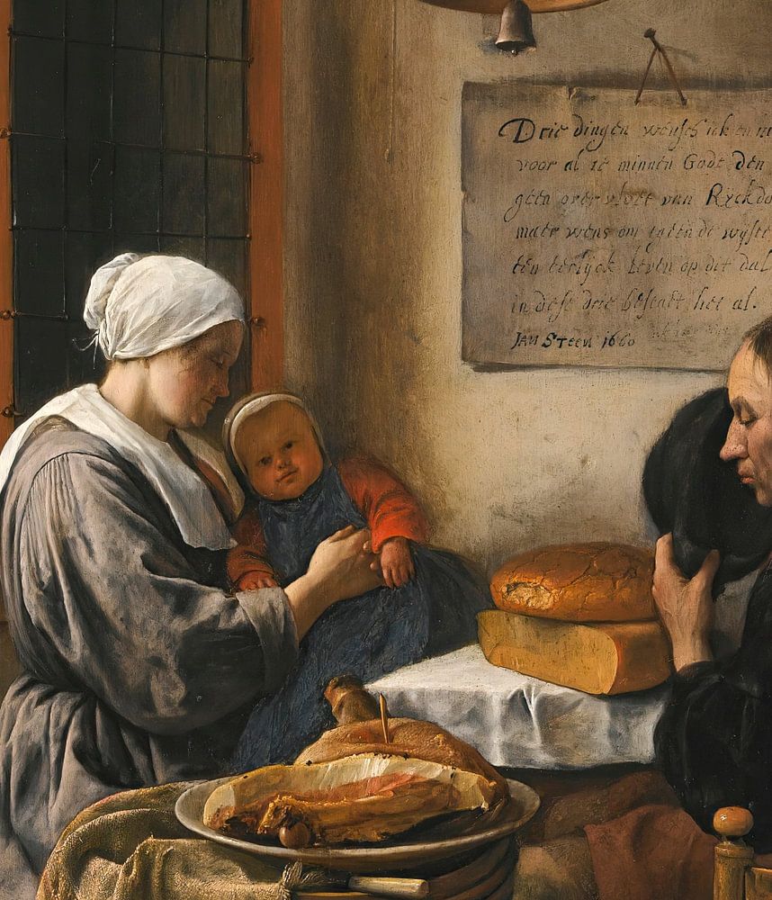 Buy The prayer before the meal, Jan Steen as a reproduction on canvas, ArtFrame, poster and wallpaper, printed on demand in high quality.