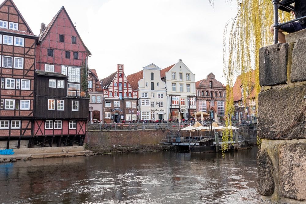 The river Ilmenau, Lüneburg. With the beautiful and stately old houses in the background.