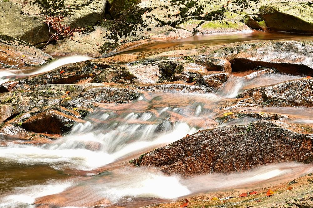 The river Ilse in the romantic Ilse valley at a hiking trail at the foot of the Brocken in the Harz National Park in Germany. The Ilse valley near Ilsenburg is very popular with hikers as a starting point for a hike to the summit of the Brocken.