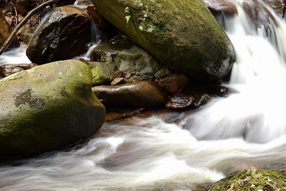 The river Ilse in the romantic Ilse valley at a hiking trail at the foot of the Brocken in the Harz National Park in Germany. The Ilse valley near Ilsenburg is very popular with hikers as a starting point for a hike to the summit of the Brocken.