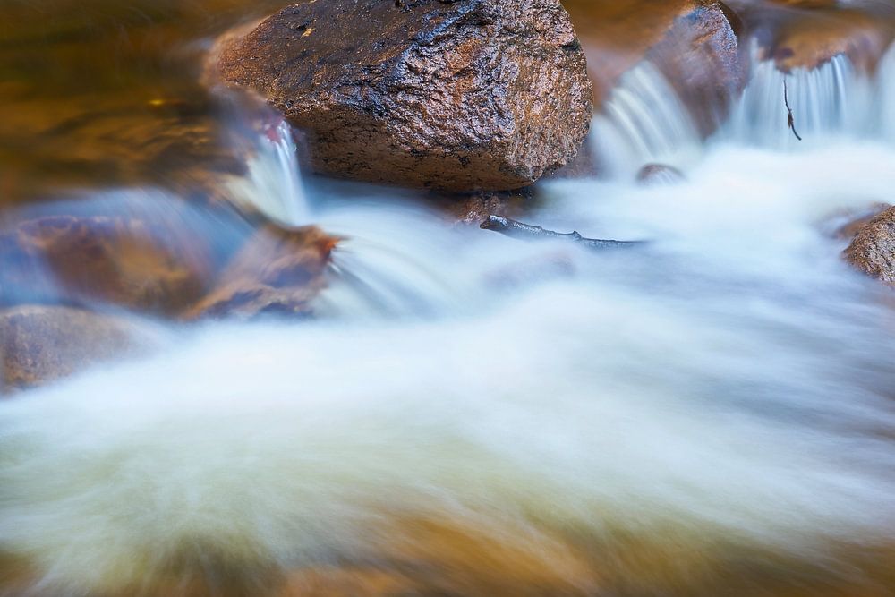 The river Ilse in the romantic Ilse valley at a hiking trail at the foot of the Brocken in the Harz National Park in Germany. The Ilse valley near Ilsenburg is very popular with hikers as a starting point for a hike to the summit of the Brocken.